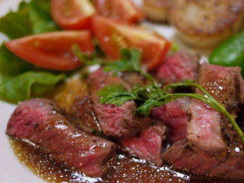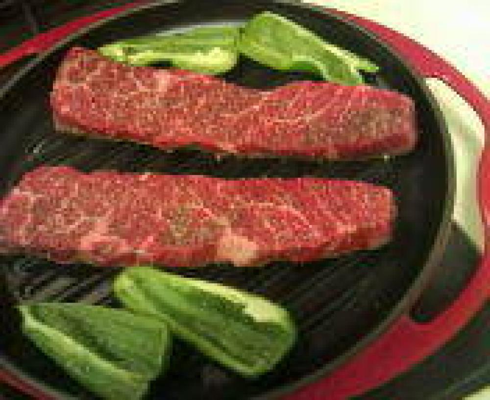 ![]() 1に塩・コショウをふり、熱々ににしたルクルーゼグリル・ロンドでジュ~っ強火で両面焼く。