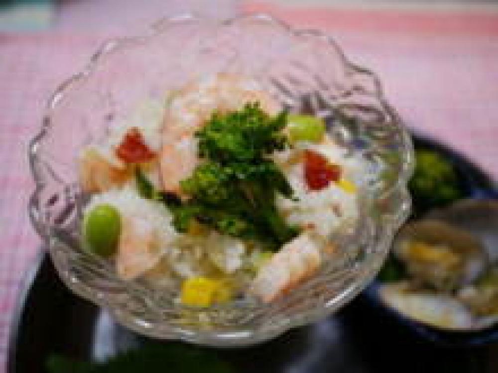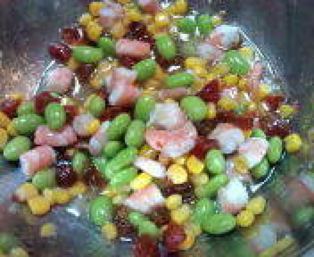 ![]() 枝豆は熱湯をかけ解凍し全ての材料を混ぜ合わせる。