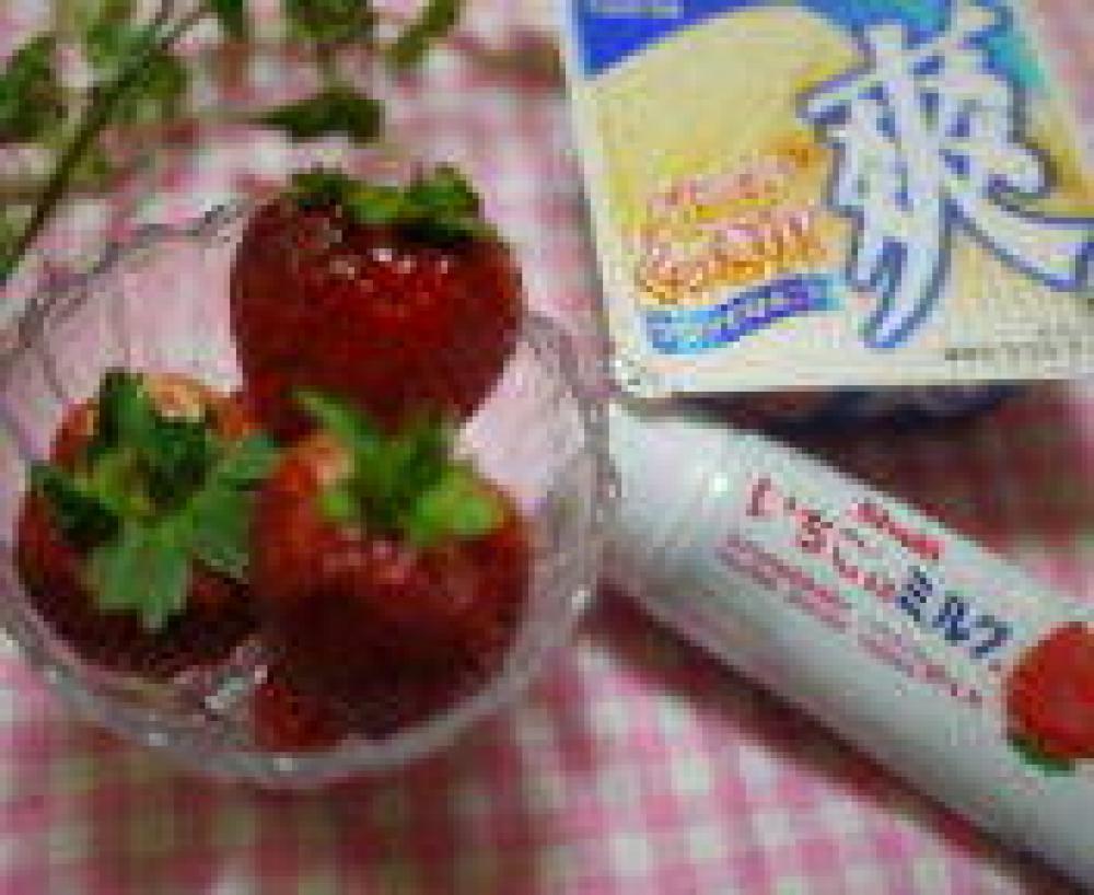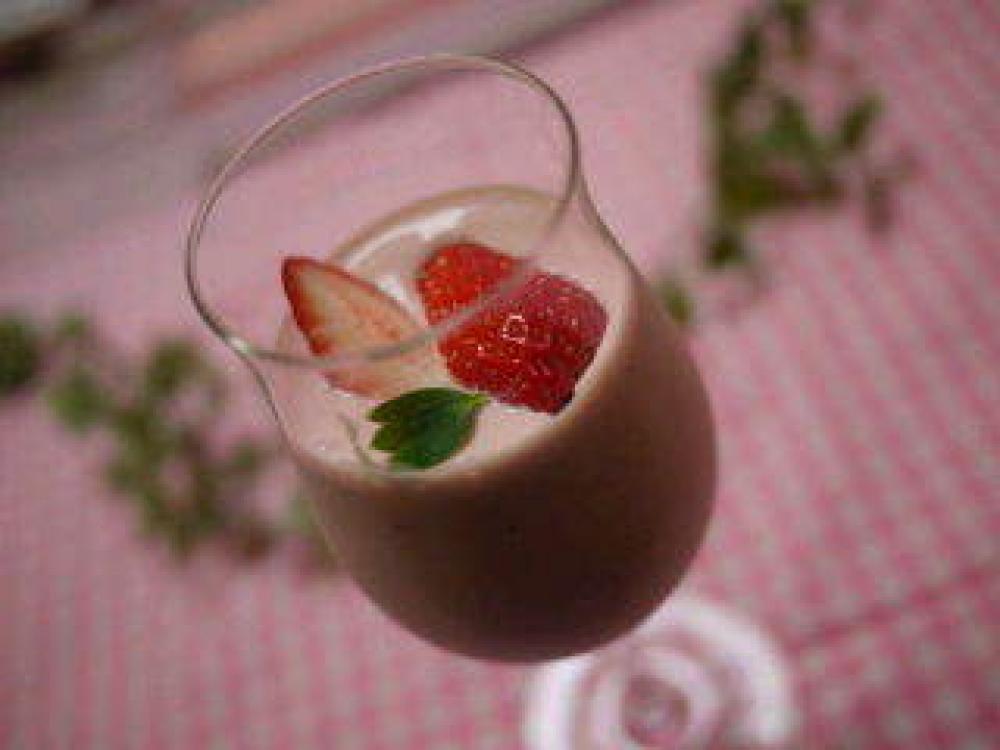 ![]() 容器にアイスを入れ苺を小さくカットし、バーミックスで30秒上下に動かしグラスに入れ完成。