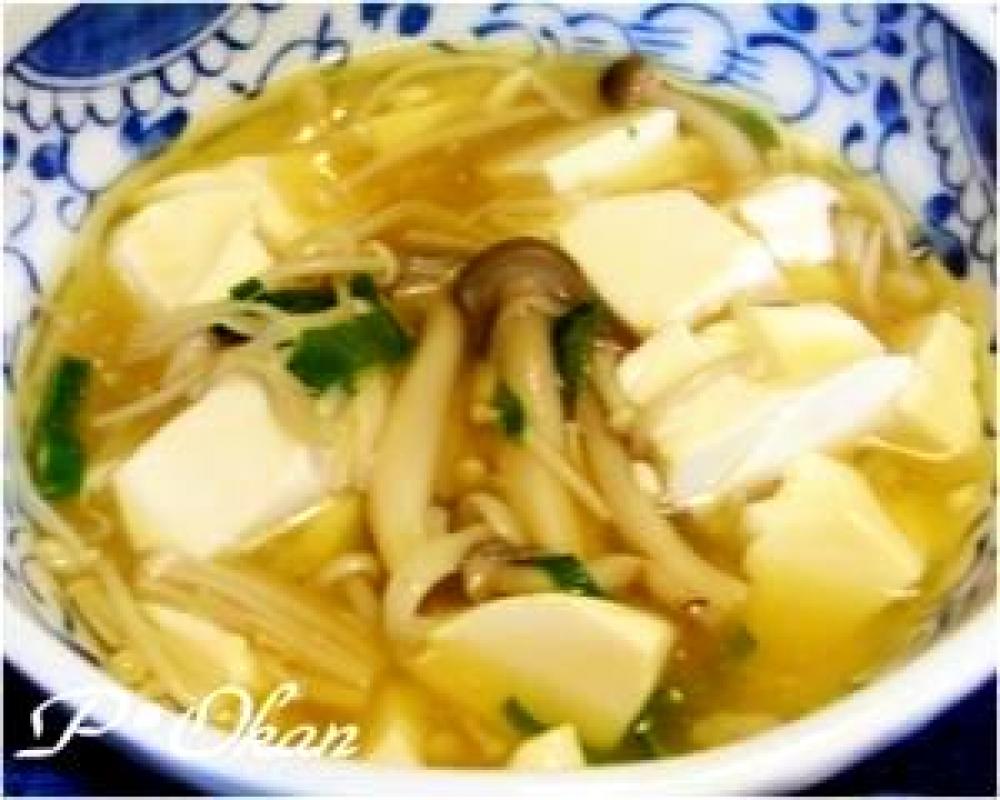 鍋に水を入れて☆の調味料を入れて沸騰させ1のきのこ、豆腐を入れて再度沸騰させる。