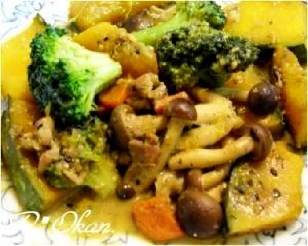 ブロッコリーは湯掻いておく。人参はイチョウ切り、カボチャ、シメジは適当な大きさに切る。