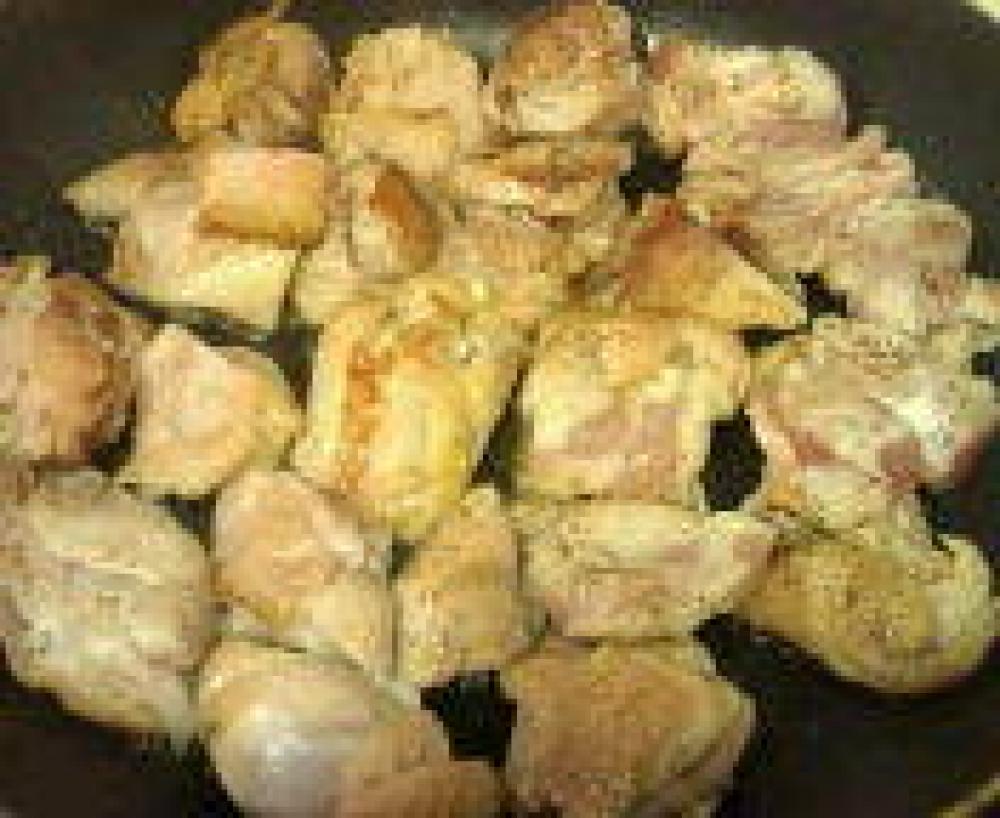 ![]() 鶏肉をひと口大に切り、塩・コショウして何もひかないフライパンで皮の方から焼き、