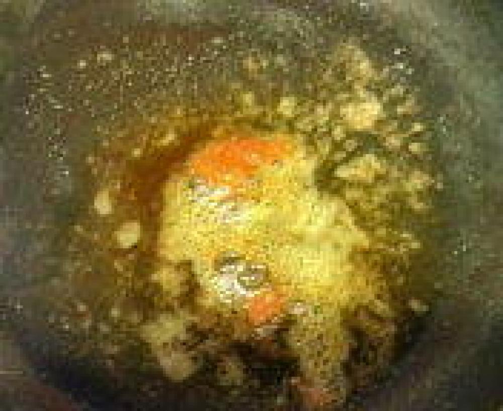![]() フライパンにごま油・豆板醤を入れ弱火で香りが出るまでかき混ぜる。