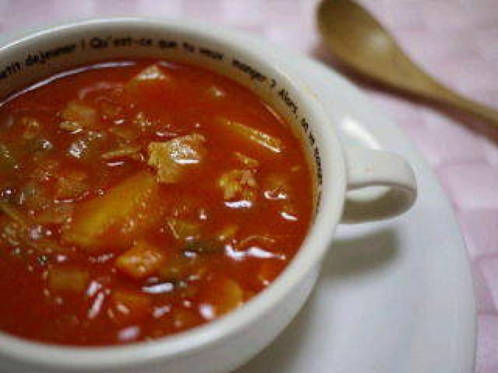 ![]() 2にトマトジュースコンソメを入れて弱火で10~15分煮込み完成です。