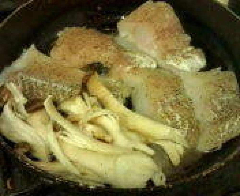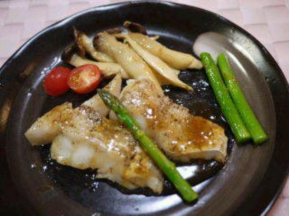 ![]() 熱したフライパンにオリーブオイルを入れタラを両面焼く。(この時エリンギも一緒に焼き、途中でアスパラも入れる)