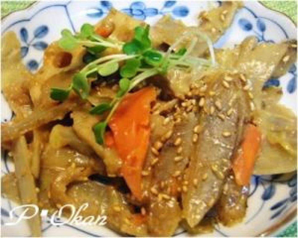 ゴボウ、人参は笹がき、レンコンは薄くスライスする。