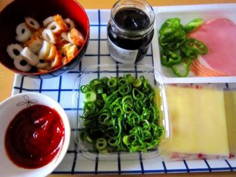 ![]() そこへチクワをのせてネギを散らし半分に折ったチーズです。
