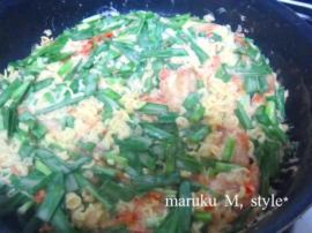 ![]() ボールにニラとキムチの刻んだものと①のラーメンを入れます。