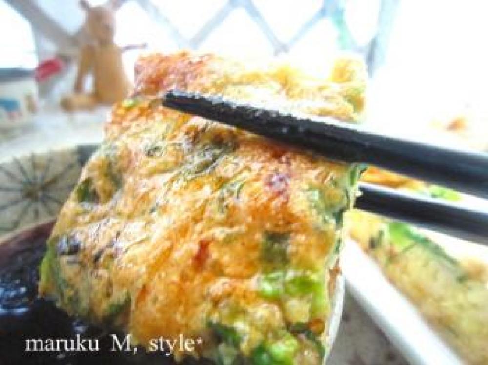 ![]() その中へ★のあわせたタネを入れてスプーンで空気を入れながら混ぜます。
