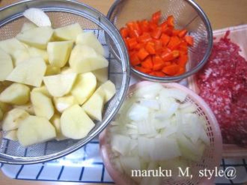 ![]() 少し炒めれば人参も入れて最後にジャガイモを入れます。