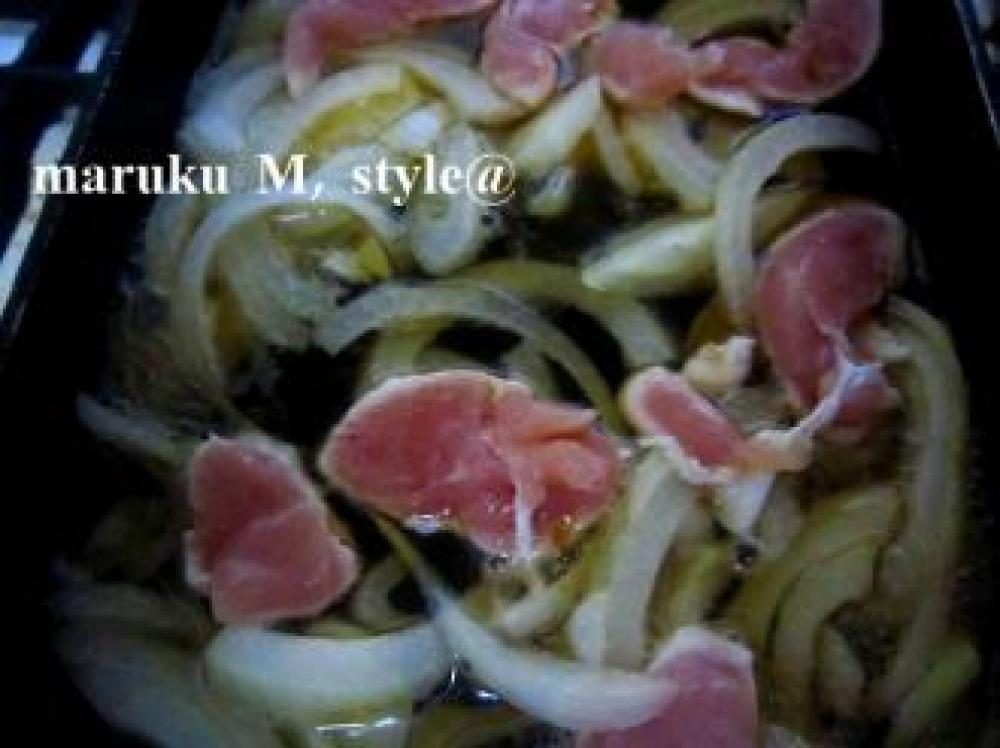 鶏を薄切りにします。玉ねぎも薄切りにします。*時間に無い方はレンジで玉ねぎを2分ほどチンします。
