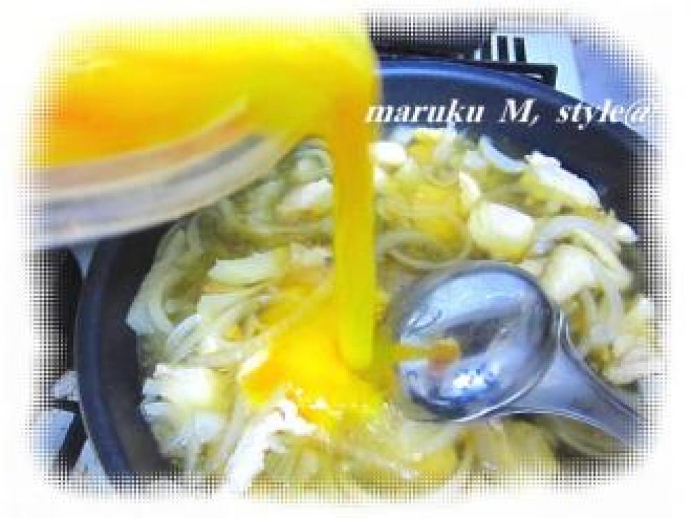 ![]() 卵をよくとき、回しいれます。入れた後は混ぜない!は当たり前ですね!おつゆが濁ります。半熟で火を止めます。