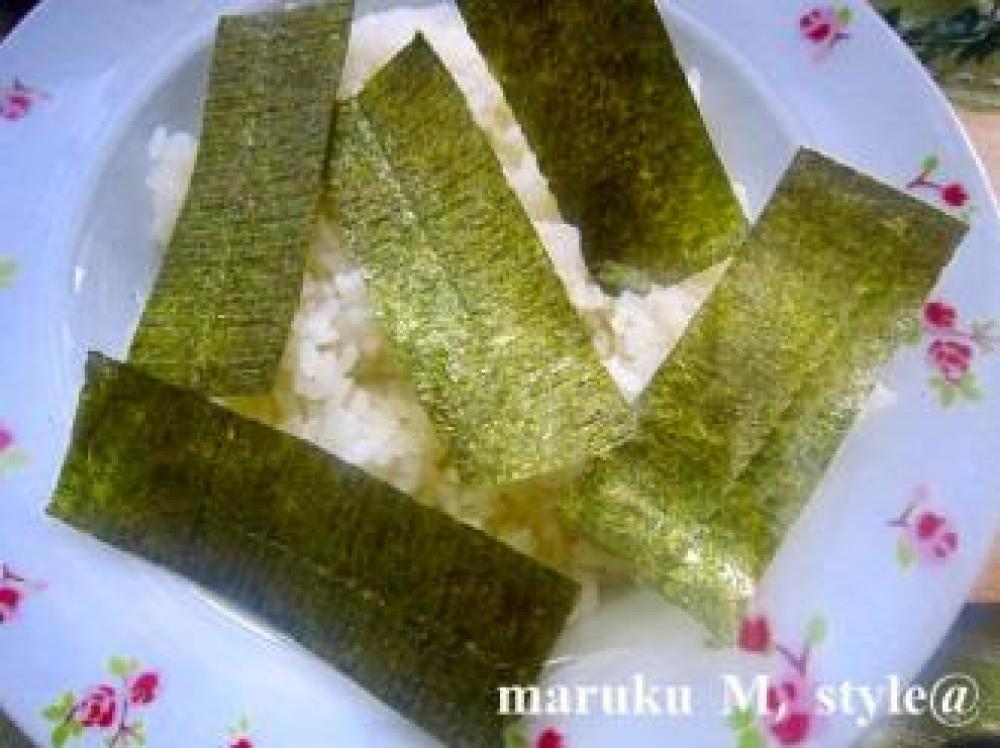 ![]() 器にごはんをのせて、のりをのせます。(^^)