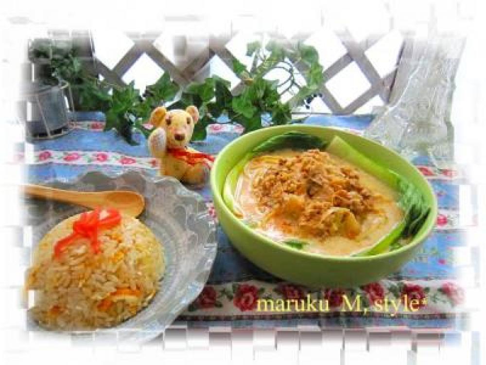 ![]() 水と鶏がらスープの素、塩、紹興酒を入れて煮ます。煮立ったら豆乳を入れます。