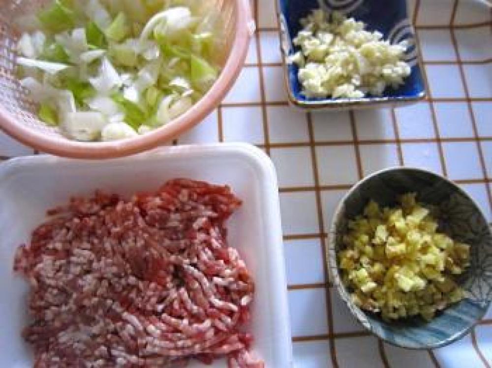 ![]() 生姜もニンニクも、ミジン切りにします。ネギも細かく切ります。