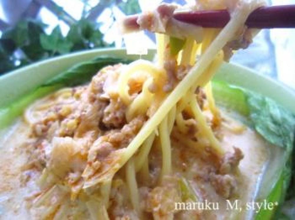![]() 後は好みの麺で・・。ルクエでチンした青梗菜を中に入れます。