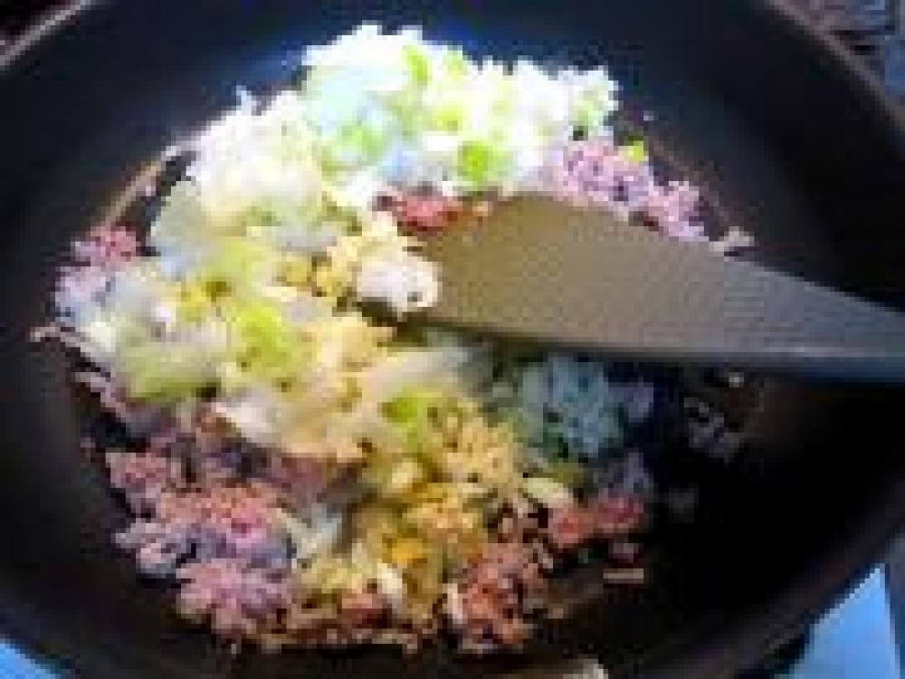![]() オイルなしでフライパンに★を入れてよく炒めます。 豚の脂分で炒まります。火が通れば☆を入れてさらに炒めます。