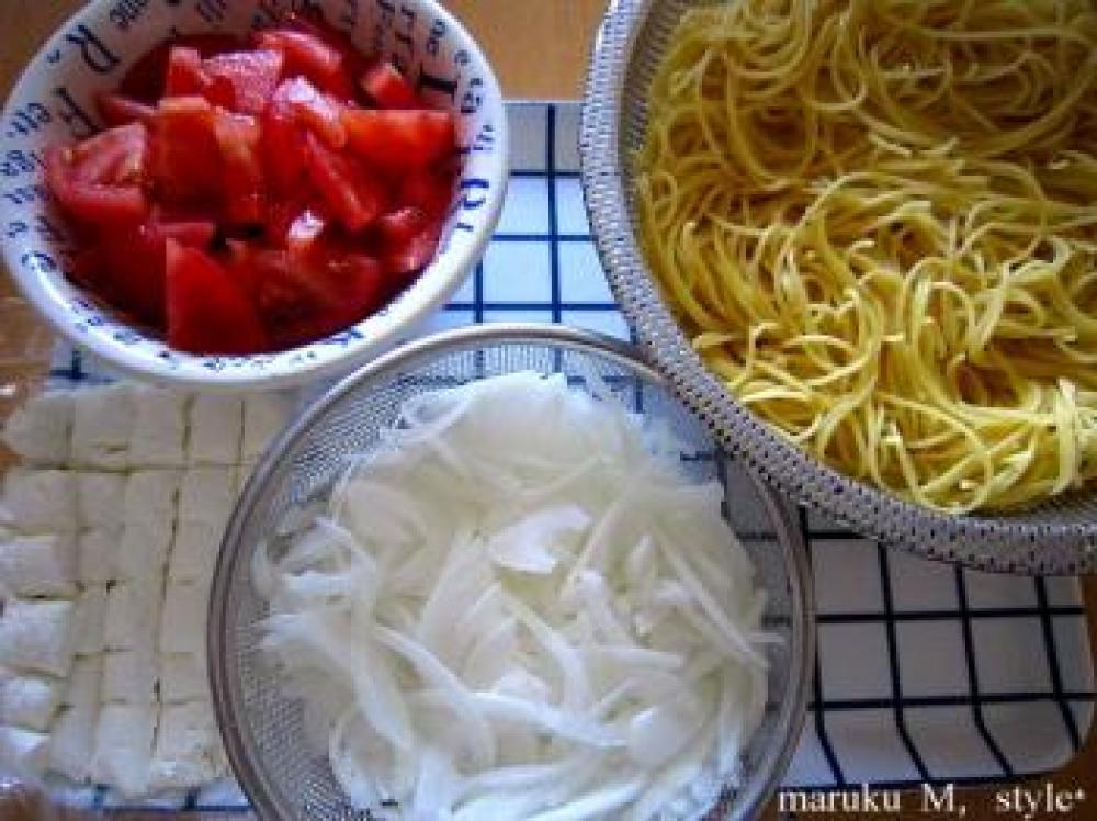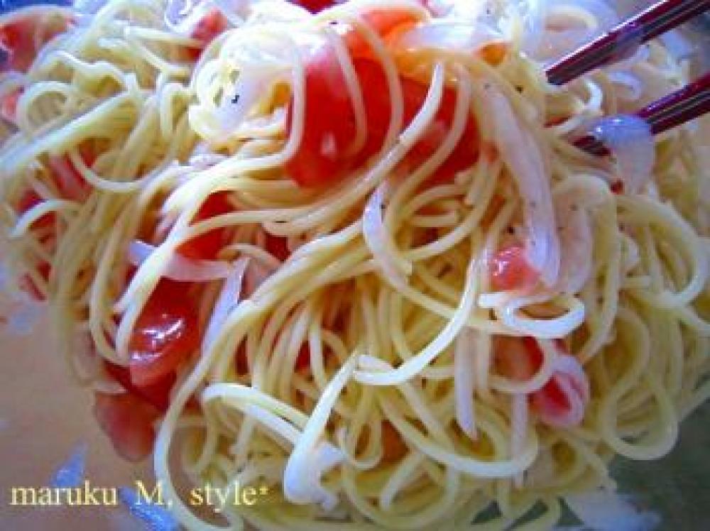 ![]() パスタはお好きな硬さで茹でておきます。玉ねぎも新玉を使えば水にさらさなくてもそのまま使えます。