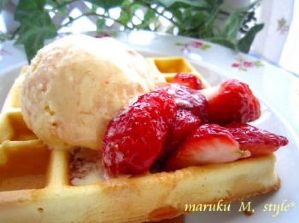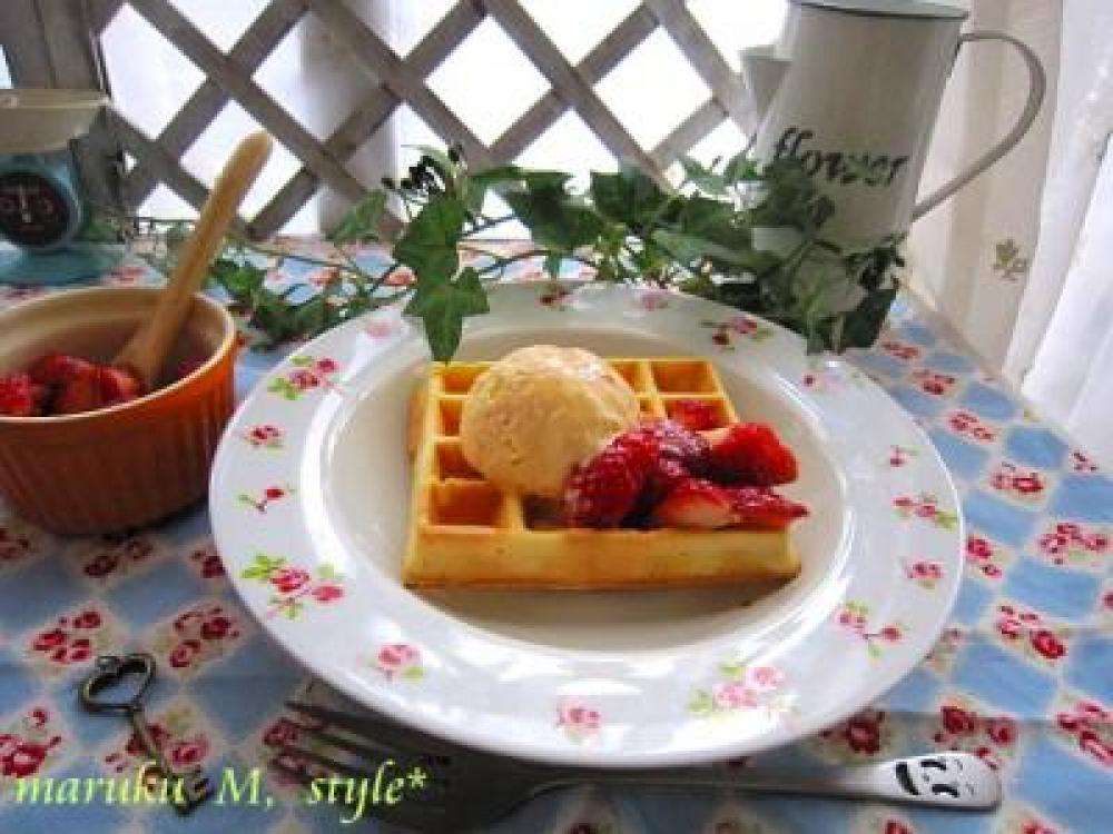 ![]() ソースをワッフルにかけて、その横にちょこんとバニラアイスを添えました!