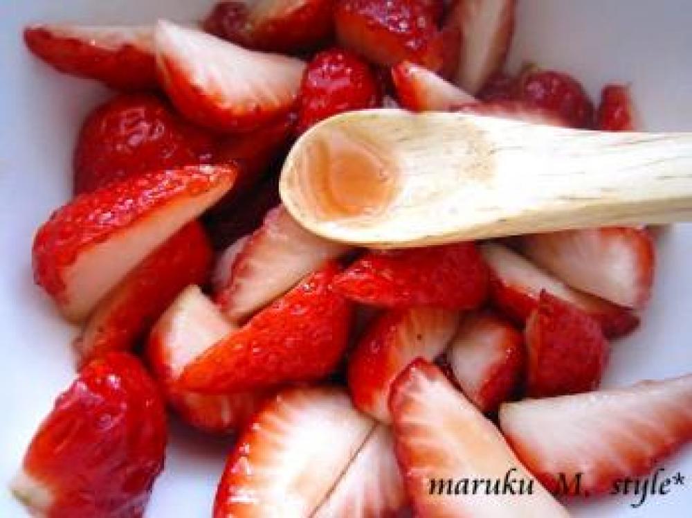 ![]() ソースにしたのは、苺をカットして粉糖を適宜入れて木苺のリキュールを多めにかけて馴染ませました。