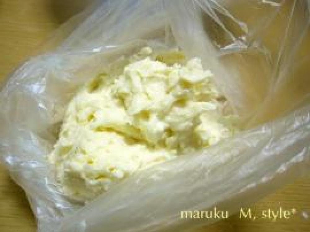 ![]() クリームチーズを泡立ててそこへ、バターも入れて泡立てます。砂糖を2回に分けて入れます。