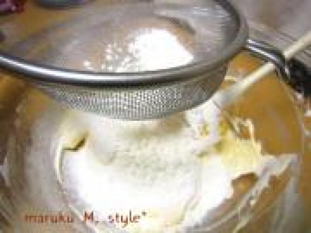 ![]() そこへ卵も入れて混ぜ、振るった★を入れてさっくり混ぜます。