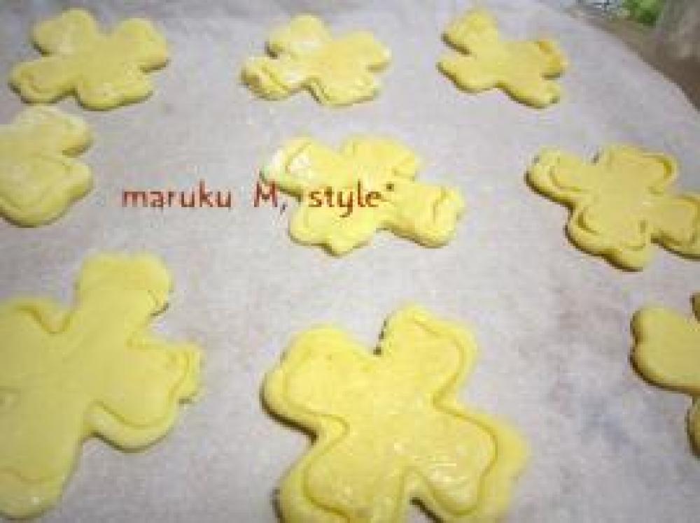 ![]() 次の日に型で抜きました。生地が固めなので残りの型を抜いた後の生地は集めて丸くして焼きました。