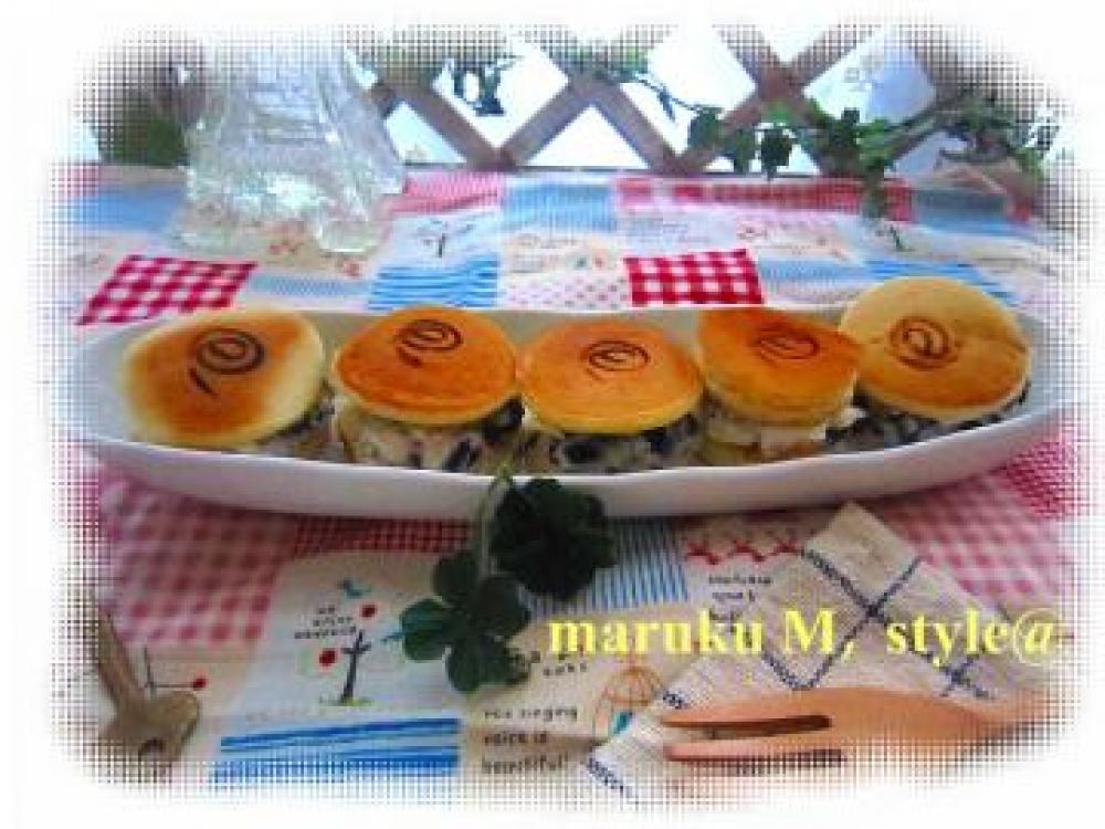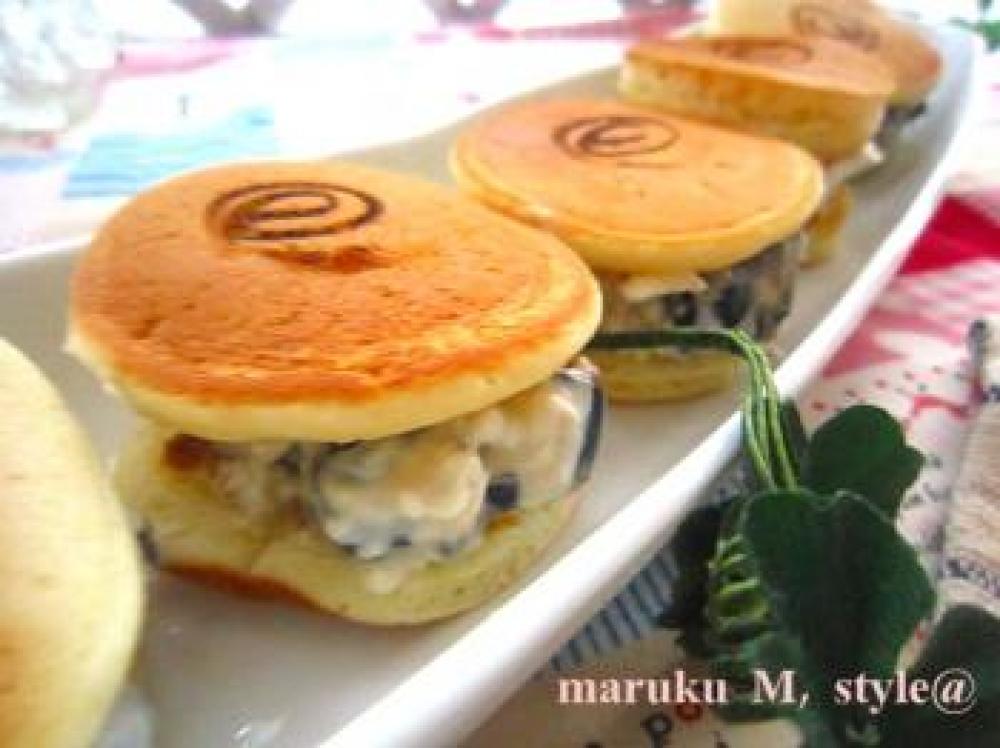 ![]() 黒豆の汁気は入れないで、室温で柔らかくしたクリームチーズとよく合わせます。それを、このパンケーキで挟むだけ!