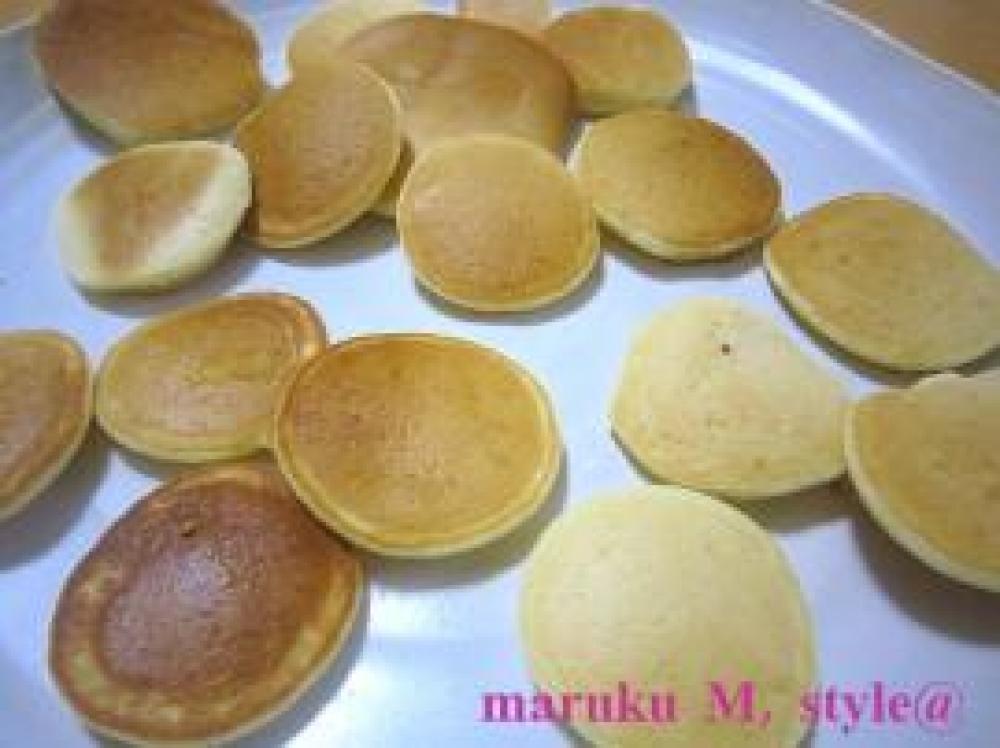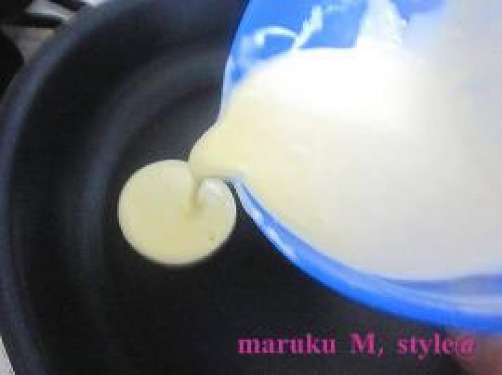 ![]() それを油なしのフライパンンに小さい丸で焼きます。