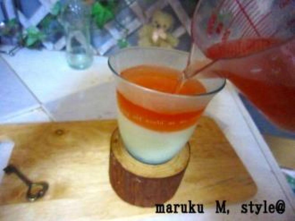 ![]() 固まったらそこへ、アセロラゼリーを注いで再度冷し固めれば完成!