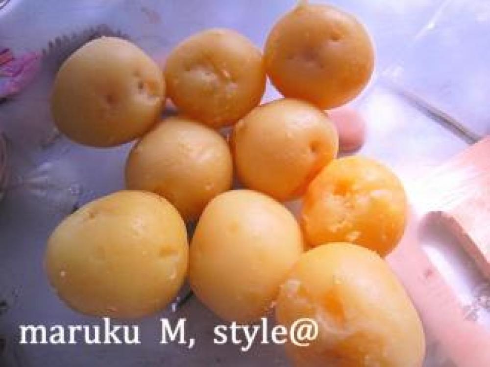 ![]() ジャガイモは皮付きで蒸すか、圧力鍋!ジャガイモの大きさにより変わりますが、だいたい圧力がかかれば12分!皮をむきます。