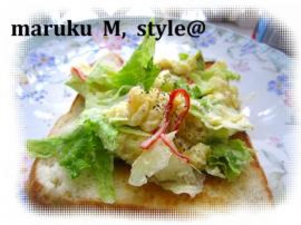 ![]() 食パンを焼いて軽く、バターを塗ります。その上にこの、ポテトサラダをのせてハムをのせて、少しのマヨネーズをかけます。