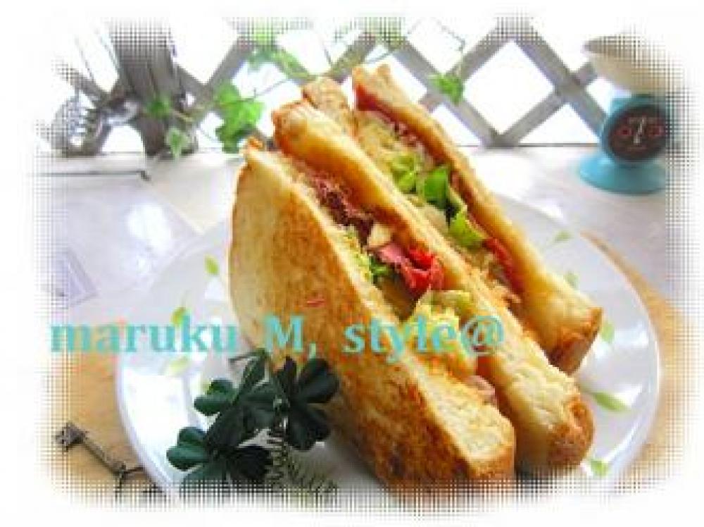 ![]() 食パンの蓋をして、斜めにカット!(バターかマーガリンは必ずサンドには塗らないとパンに野菜の水分が入りべチャつきます。)
