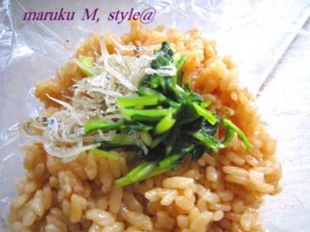 ![]() ギュっギュっと適度な力加減で握ります。握るというよりまとめる感じがいいらしいです!次は水菜&ジャコ