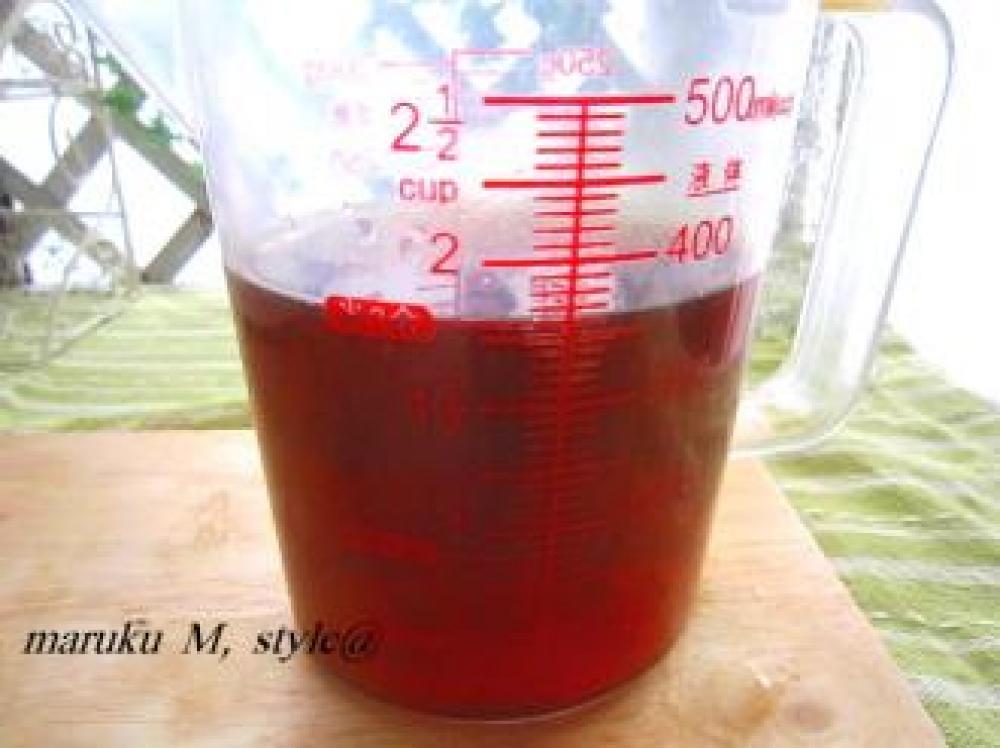![]() 冷ました濃い目の番茶を炊飯器のメモリまで入れて下さい。*番茶は余分に作っています。