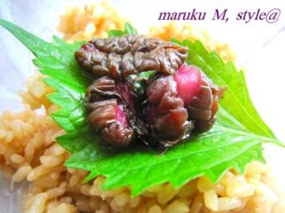 ![]() 次に中に入れる具を用意しておきます。最初の具は、しば漬け&青シソ