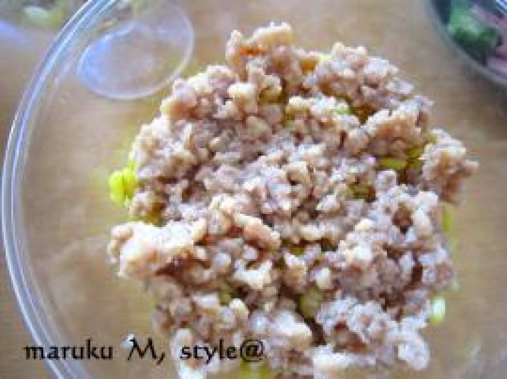 ![]() ⑨の鳥挽き肉を入れます。
