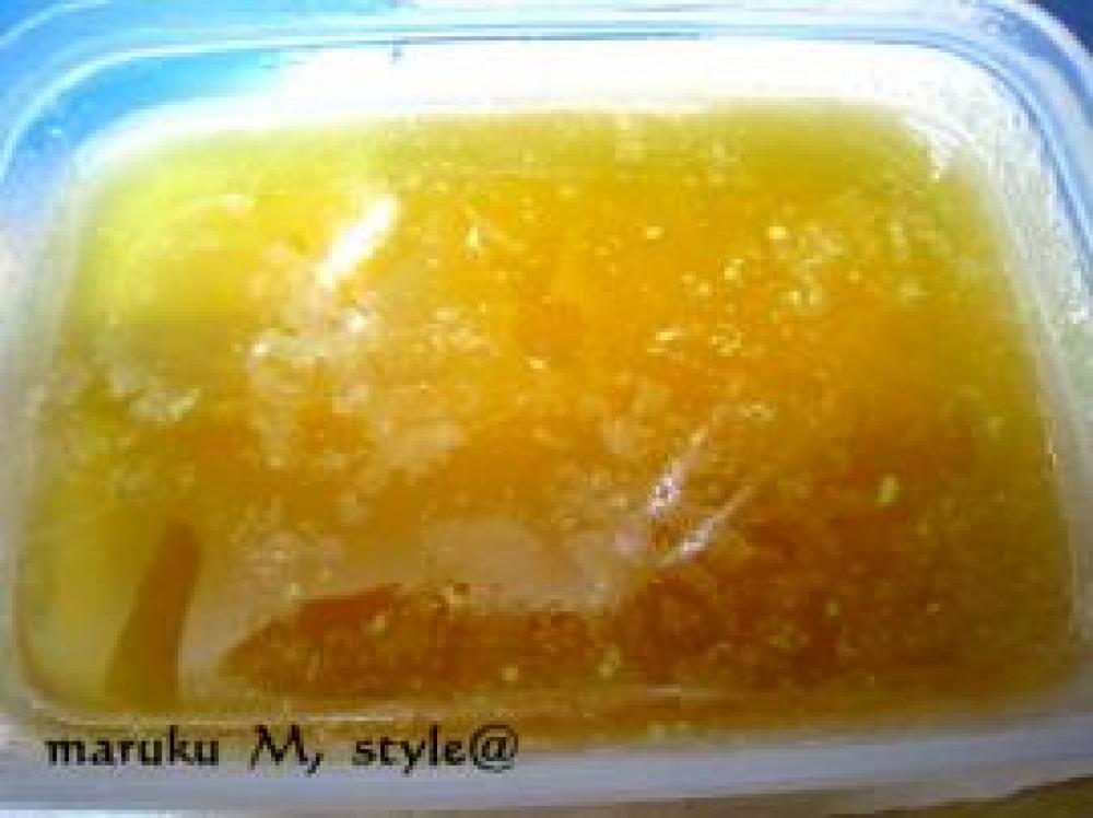 それをあら熱が取れれば冷し固めます。 (ゼラチンは沸騰すると固まりにくいから)