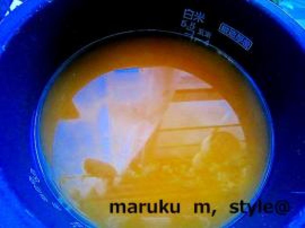 ![]() ご飯を研いで、水と麺つゆ、醤油をあわせて普通の水の分量にします。