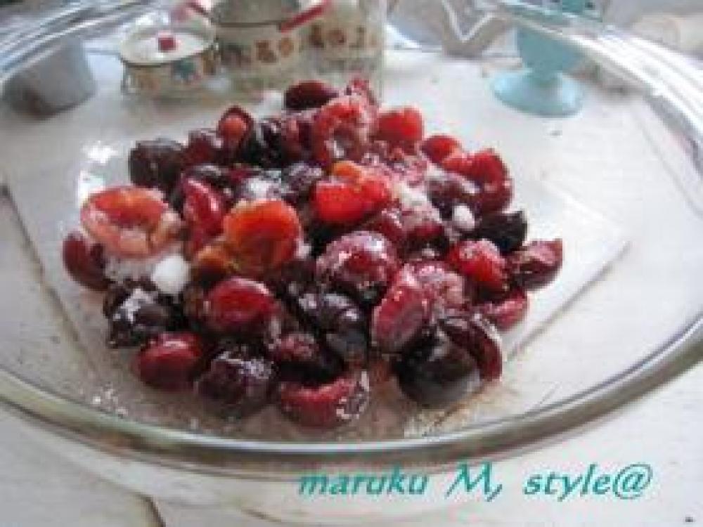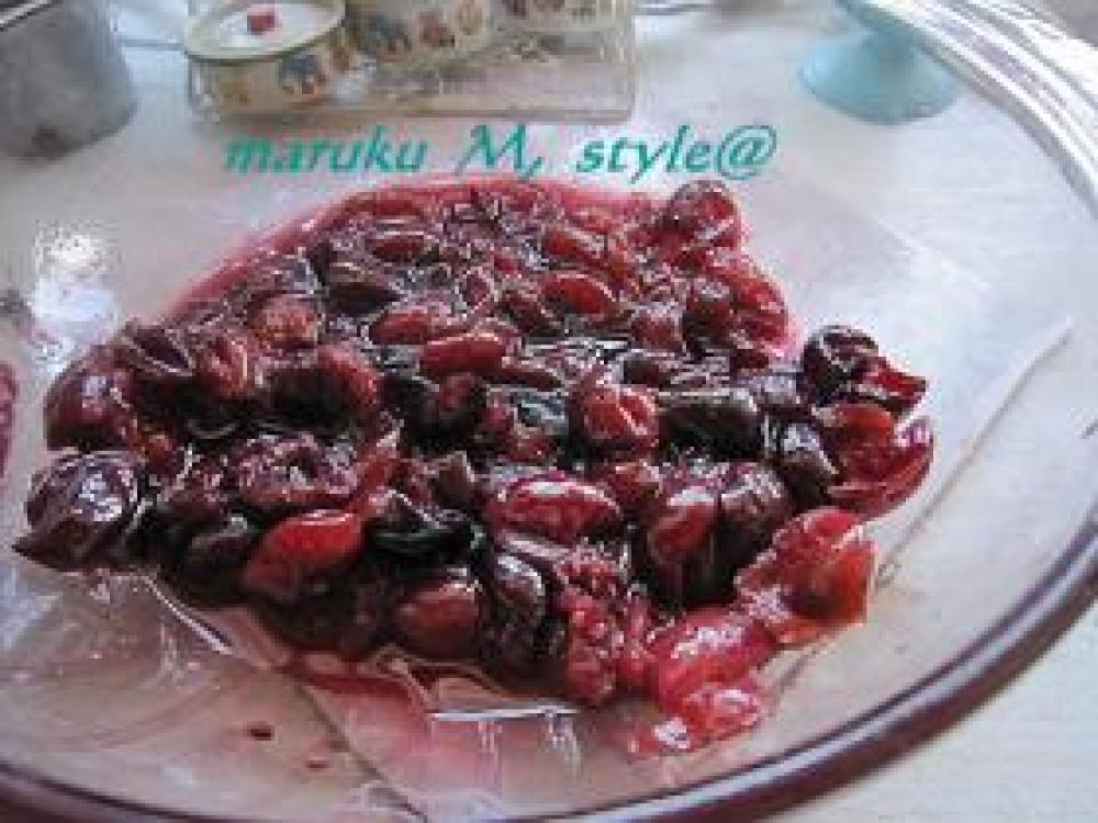 ![]() よく洗い種と枝を取り(汁がこぼれるので器の中でするといいみたい!)砂糖とラム酒をかけて10分位置いておきます。
