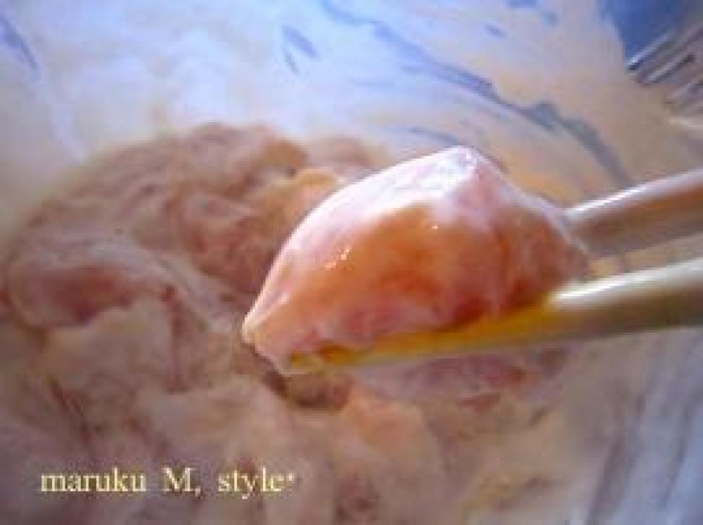 ![]() 簡単!★の粉類をあわせて衣を作り下味なしの鶏を1口サイズのきったのを入れて揚げるだけ!