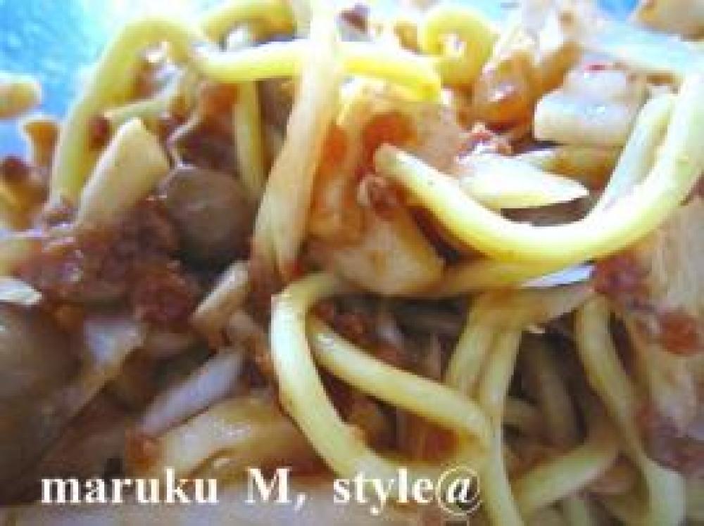![]() ボールに中華麺と①とキューピー肉味噌風ソースを入れてよく混ぜます。