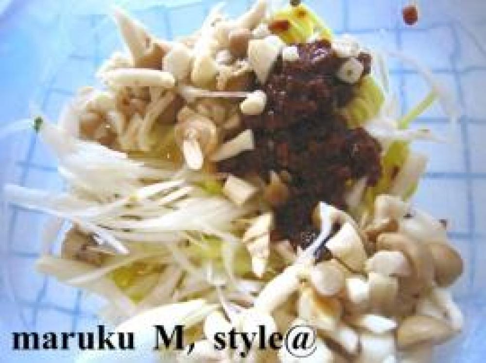 ![]() ここで、風味付けにごま油と塩少しを入れて全体を一体化させます。炒めずにボールで合わせるだけ!