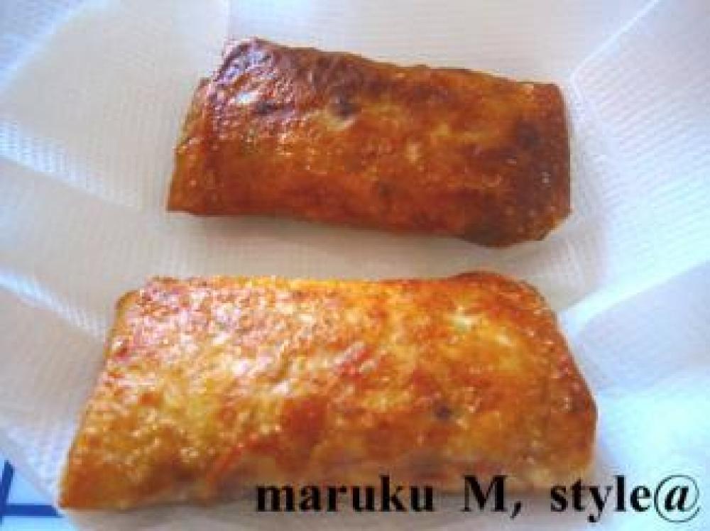 ![]() これを春巻きの皮に適宜のせて、といた小麦粉ののりで離れないように引っ付ければ完成です!