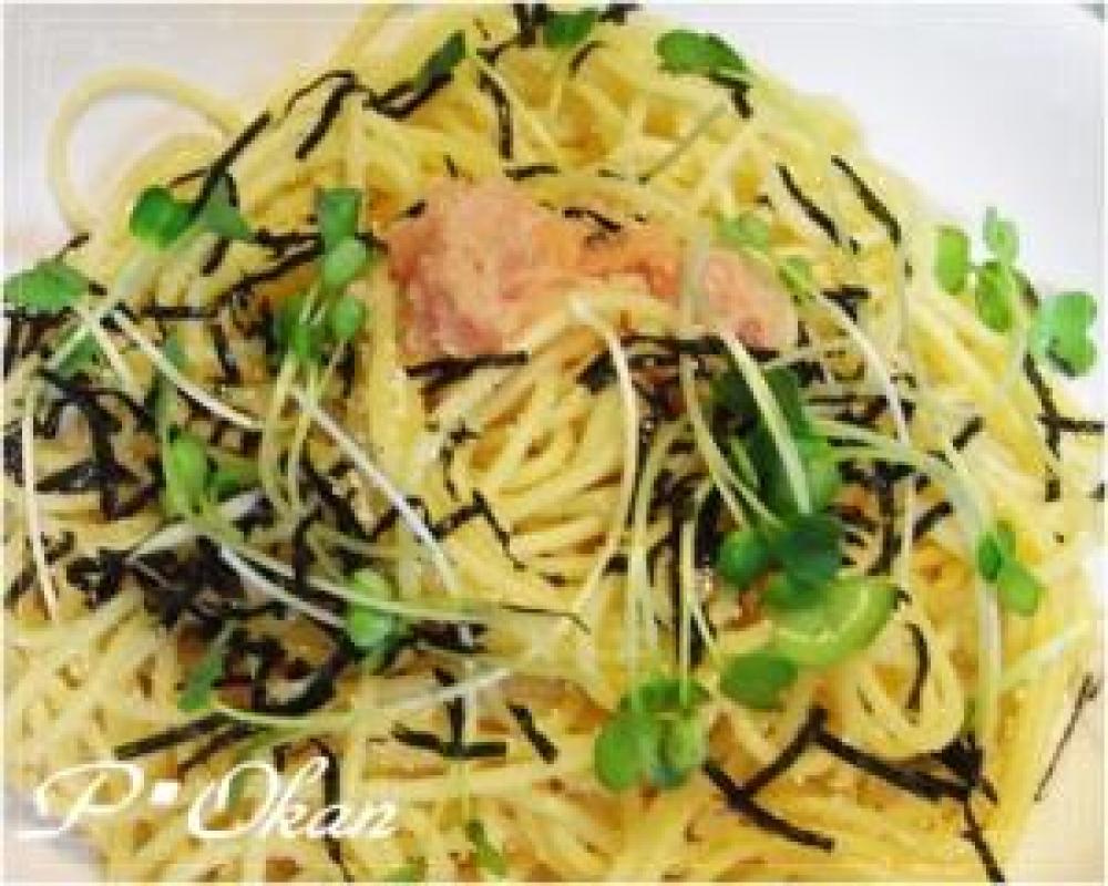 茹であがったパスタに2を混ぜる。海苔やカイワレ、水菜などを散らすと綺麗。