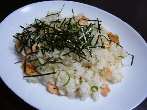 焼いて荒めにほぐした鮭を①に加えてさっくりと混ぜ、しそも加える。