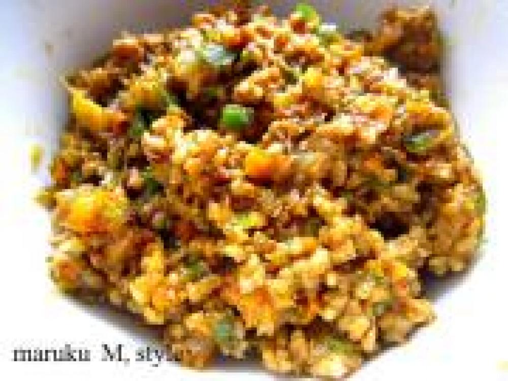 ![]() ★をフードプロセッサーにかけます。油をひかないで、豚挽き肉と☆を入れて炒め、少ししたら ★を入れてよ炒めます。