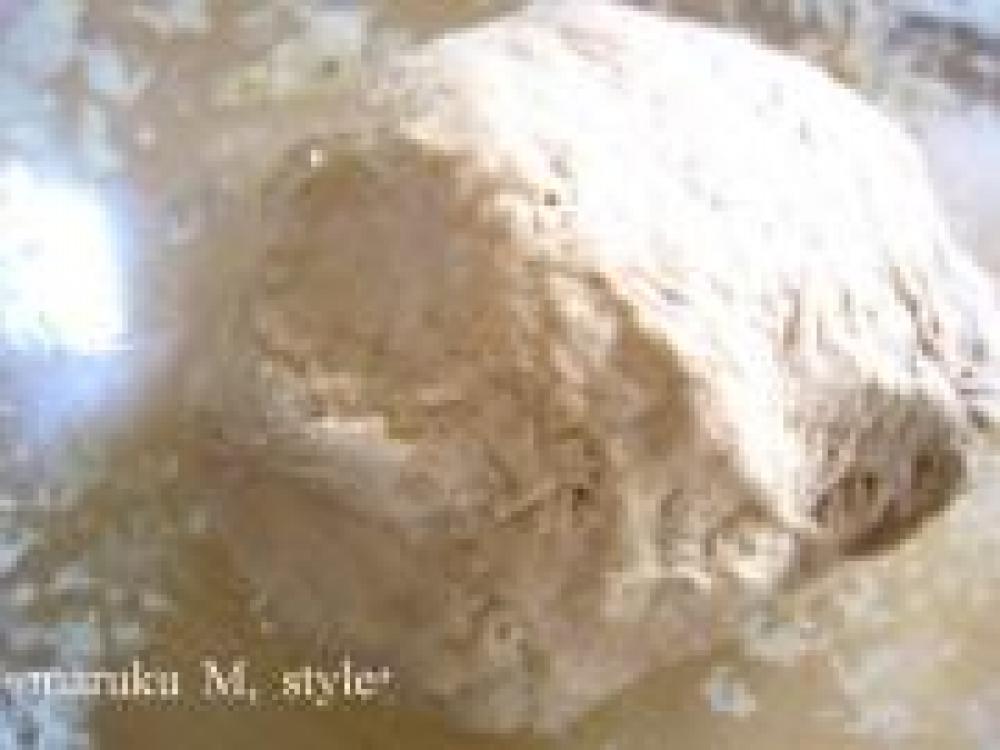 ![]() これを麺棒で丸く伸ばします。だいたい15cmくらいの直径かな??