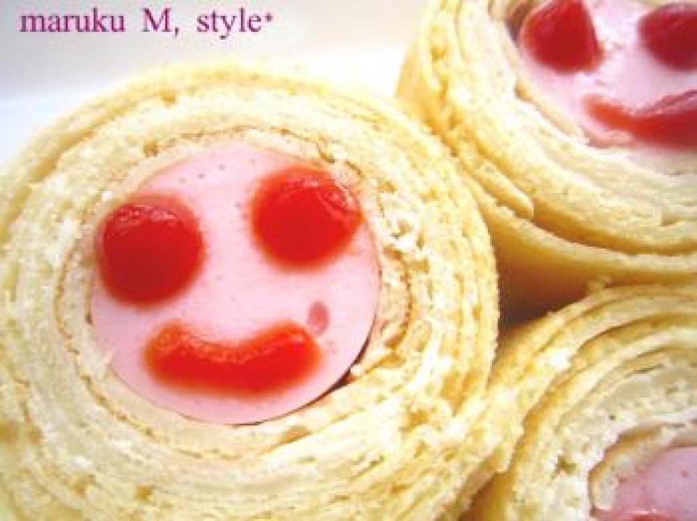 ![]() ソーセージを真ん中に挟んで海苔巻きの要領で次々つなぎ目を重ならして巻きます。
