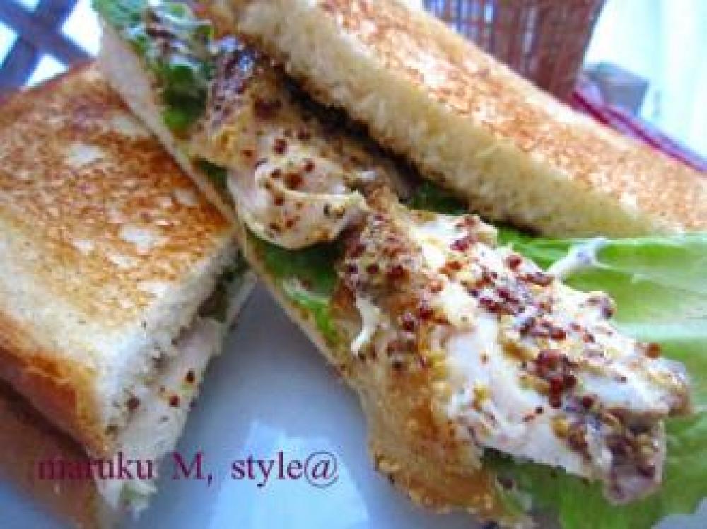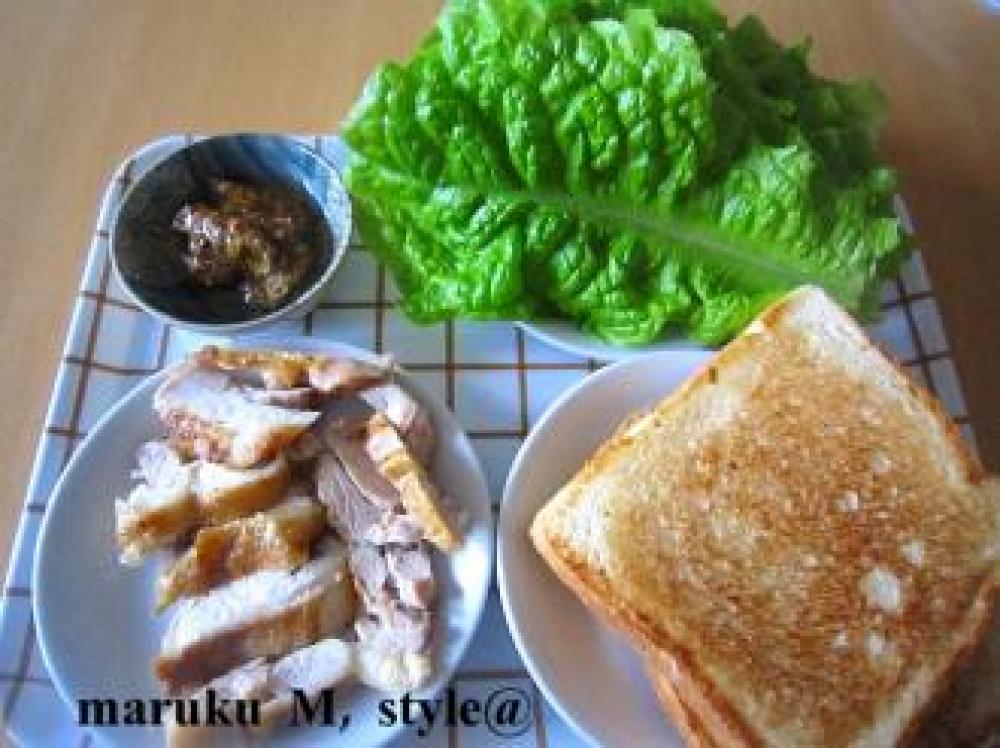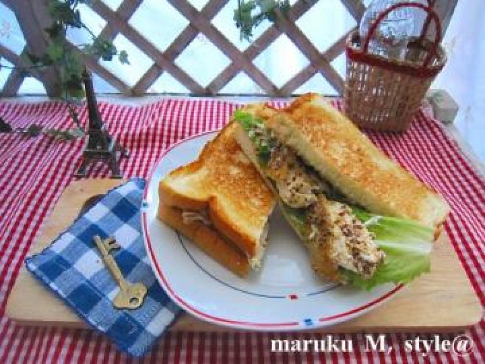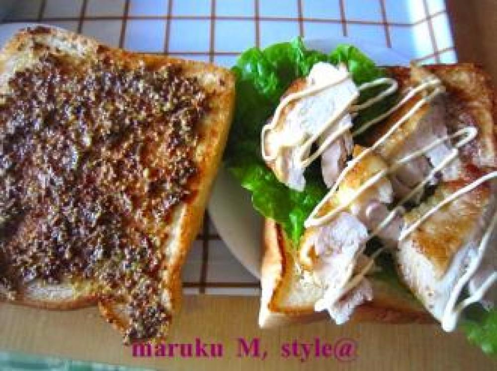 ![]() マーガリンを塗ったほうにサンチェとチキンとマヨネーズ!!さあ、サンドしたらもう完成!